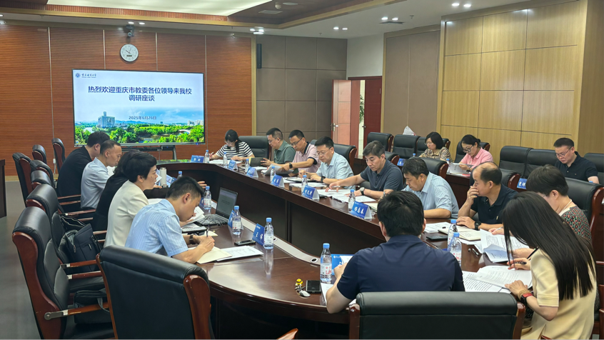 为深入贯彻落实“教育强市”战略,6月26日上午,重庆市教委科技处处长刘畅带队来校开展“教育强市区县行”专题调研。会议在博雅楼501会议室举行,由市教委科技处副处长杨鸿主持,学校副校长付文升出席会议。