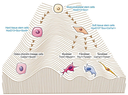 图.具有软/硬组织分化潜能的Scx+Hoxd13+肌肉骨骼系统干细胞